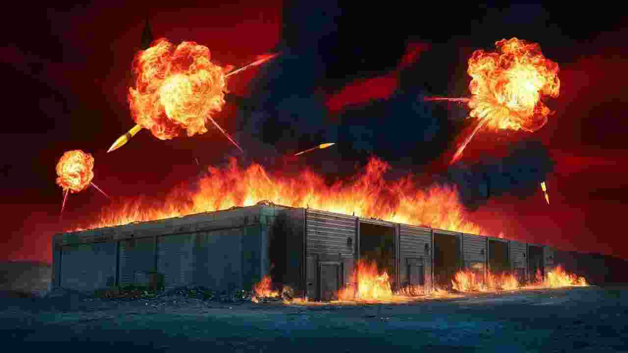 L’incendie aurait pris naissance dans un bâtiment fortifié et enterré, servant au stockage d’armes lourdes, de missiles et de munitions. Sous l’effet des flammes, des obus et projectiles ont été propulsés dans plusieurs directions pendant des heures, causant d’importants dégâts matériels dans les zones environnantes.