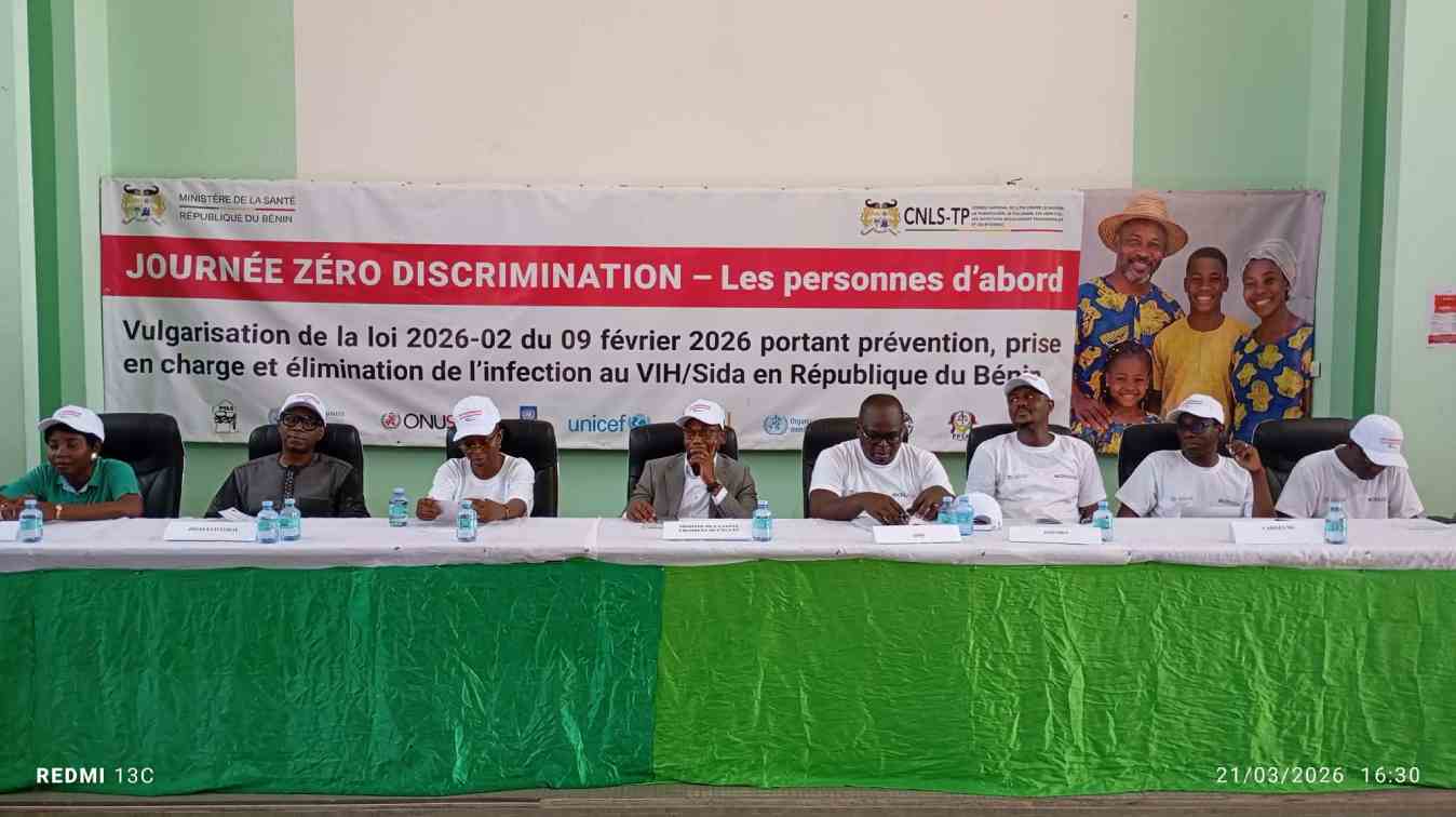 À la Faculté des sciences de la santé de Cotonou, les autorités béninoises, les partenaires techniques et financiers ainsi que les acteurs de la société civile ont célébré, vendredi 20 mars, la Journée zéro discrimination, marquée par le lancement de la vulgarisation de la loi 2026-02 sur le VIH/Sida. Cette rencontre, placée sous le thème « Les personnes d’abord », a permis de rappeler les enjeux de la lutte contre la stigmatisation et de présenter les avancées juridiques destinées à renforcer la protection des droits des personnes vivant avec le VIH.