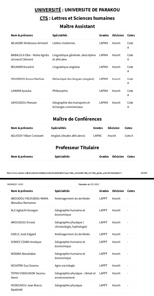 En plus de l’UAC et l’UNSTIM, les enseignants de l’Université de Parakou (UP) et l’Université nationale d’agriculture (l’Una) se sont également inscrits au grade de Professeur Titulaire du Conseil africain et malgache pour l’enseignement supérieur (CAMES).