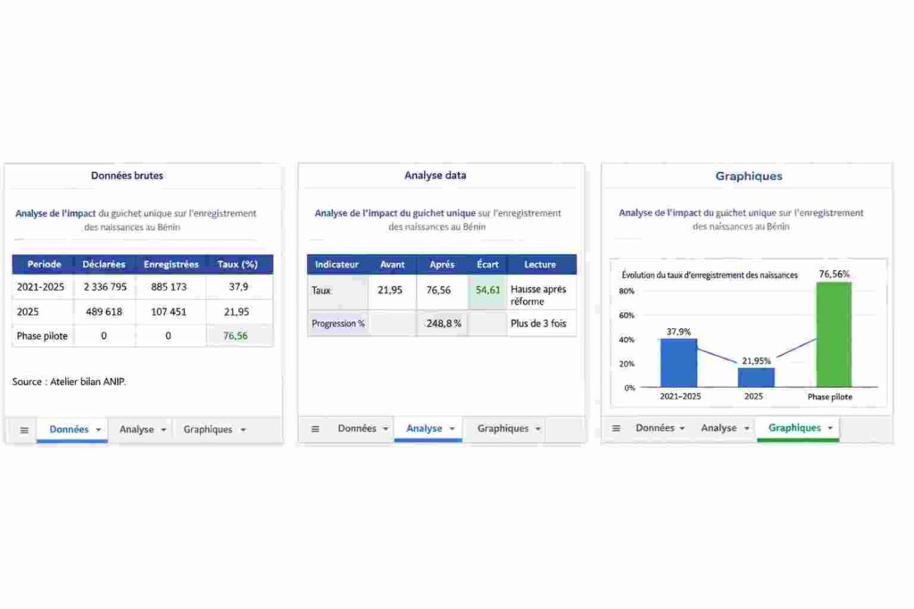 Ces chiffres traduisent un enrichissement significatif de la base nationale. Le guichet unique devient ainsi un point d’entrée stratégique pour l’identification numérique des naissances au Bénin.