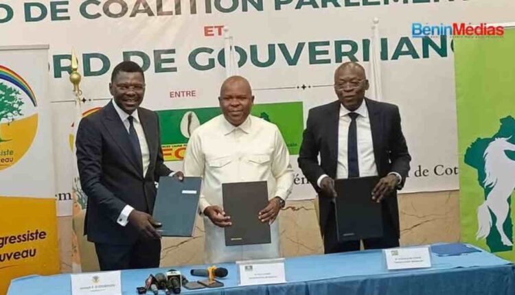 Le Bloc Républicain (BR), l’Union Progressiste le Renouveau (UPR) et la Force Cauris pour un Bénin Émergent (FCBE) ont signé un protocole d’entente ce mardi, à moins d’un an des élections générales de 2026. Cet accord tripartite, qualifié de coalition parlementaire et de gouvernance, intrigue par la présence du parti d’opposition de Paul Hounkpè aux côtés de deux formations de la mouvance présidentielle.